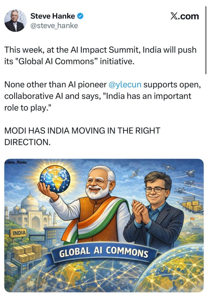 Renowned economist Professor Steve Hanke of Johns Hopkins University highlighted another forward-looking move. India is advancing its “Global AI Commons” idea, an open and collaborative approach to AI that has earned praise even from AI pioneer Yann LeCun. Professor Hanke noted that Prime Minister Modi is steering the country in the right direction.