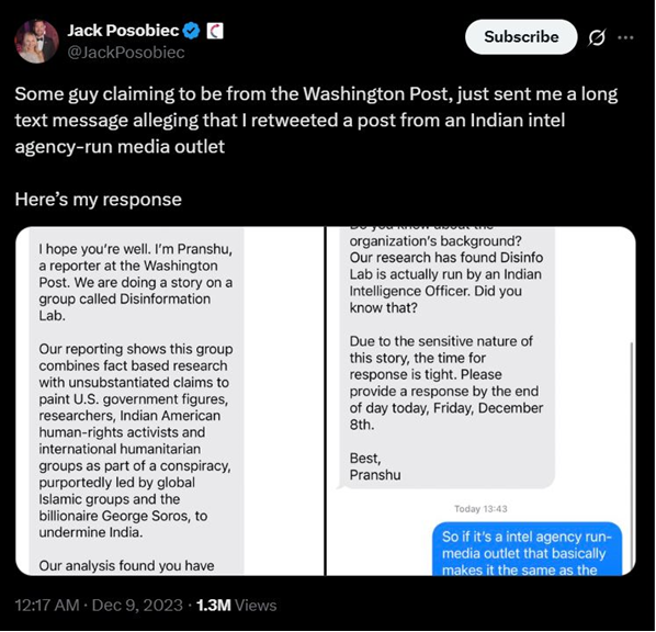 Ravi Nair, the article’s lead writer, is no impartial journalist. His X handle (@t_d_h_nair) openly showcases his Congress allegiance, parroting their talking points word-for-word. Nair’s refusal to share evidence with SEBI during the Hindenburg probe already exposed his lack of credibility. His co-author, Pranshu Verma, was called out in 2023 by American commentator Jack Posobiec for accusing India’s Disinfo Lab of being “run by an Indian Intelligence Officer.” Posobiec’s retort—“So if it’s an intel agency-run media outlet, that basically makes it the same as *The Washington Post* then?”—hit the nail on the head. The Post’s sanctimonious “investigations” are a thinly veiled front for Western geopolitical agendas.