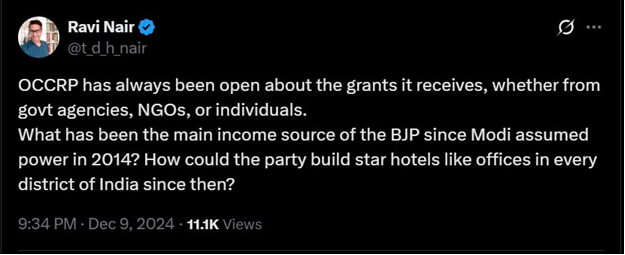 – Local operatives like Ravi Nair and Aditya Nair amplify the narrative in Indian media and on X. This synthetic outrage is timed to disrupt key moments, like the Winter Session, to shake investor confidence and paint India’s self-reliance as corruption. The real issue? Adani’s growth threatens Western control over global supply chains, from the Gulf to the Mediterranean. Congress, desperate to revive failed campaigns like “Vote Chori” and “Chowkidar Chor Hai,” happily plays courier for this agenda, recycling lies to weaken India’s economic story.